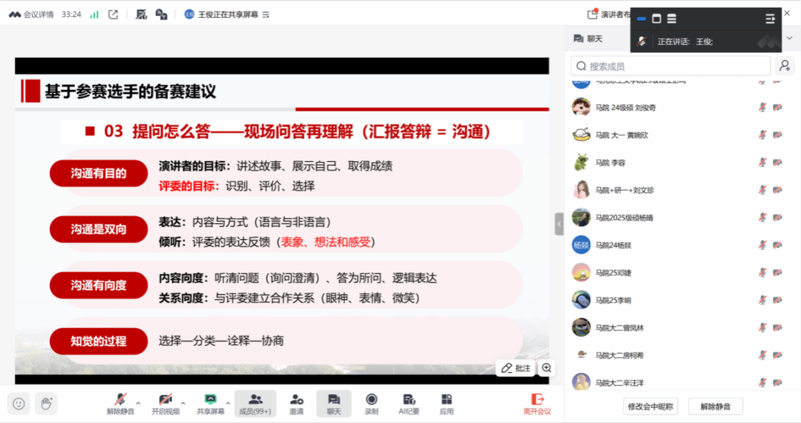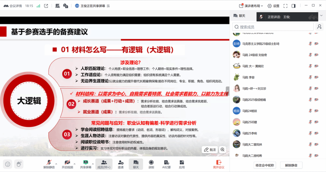 11月14日晚,小蓝视频 、李四光小蓝视频 、马克思主义小蓝视频 、教育研究院四院联合举办“职业生涯规划大赛”线上培训。王俊老师为参赛同学讲解职业规划材料如何撰写以及答辩注意事项。线上共吸引了300余名学生参加培训,老师的精彩讲解收获了广大师生的一致好评。