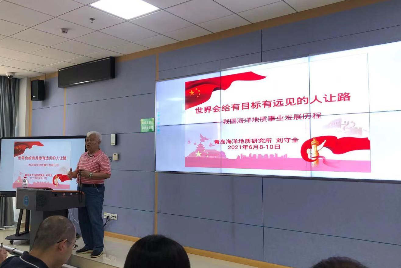 (通讯员:陈波 易立)2021年6月8日是第十三个世界海洋日暨全国海洋宣传日。当天上午10:00,青岛海洋地质研究所原所长刘守全研究员为小蓝视频 全体师生讲了一堂题为《历史会给有目标有远见的人让路——我国海洋地质事业的发展历程》的生动党课。